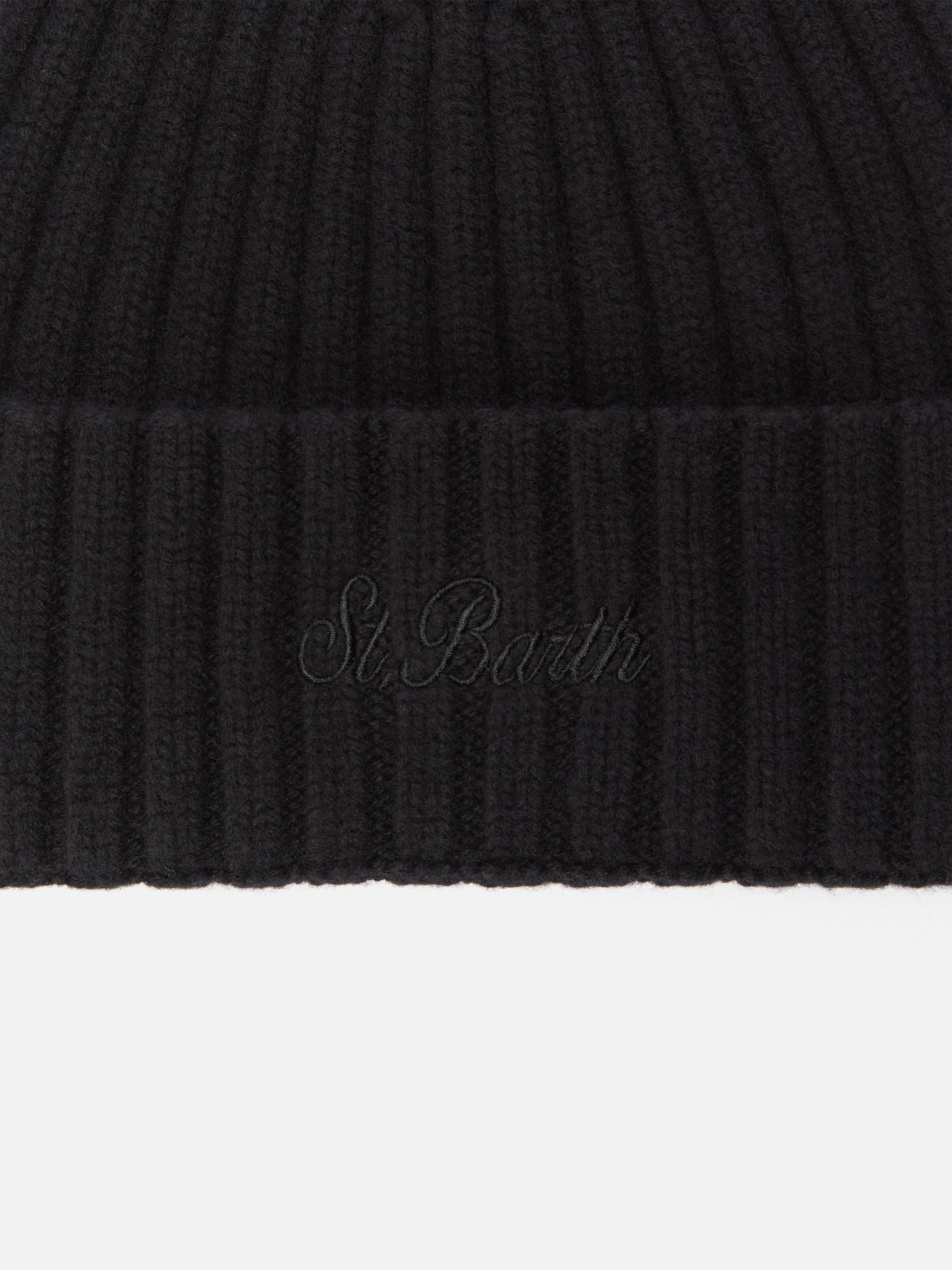 Berretto Wengen in lana nero con ricamo St. Barth sul risvolto