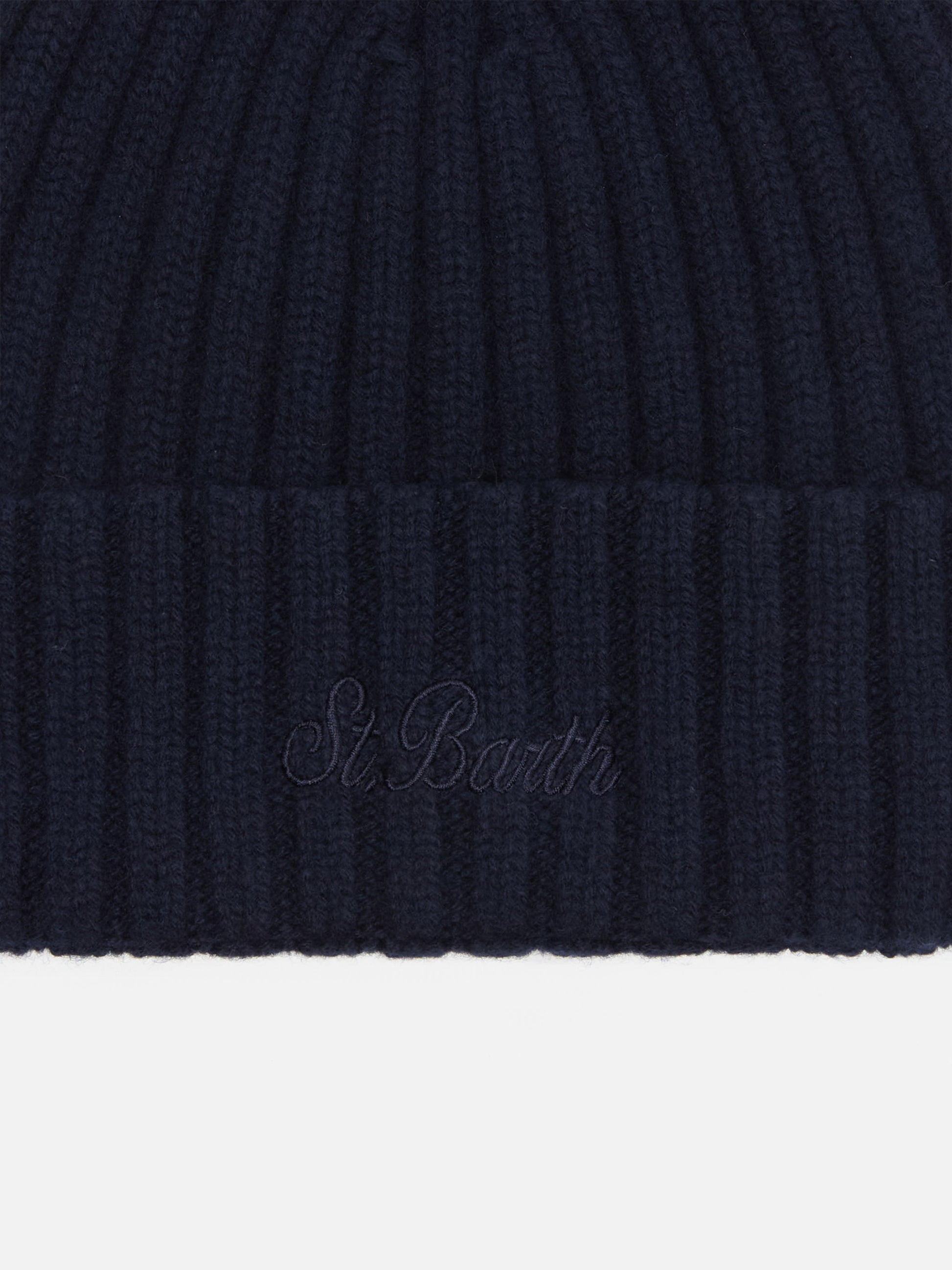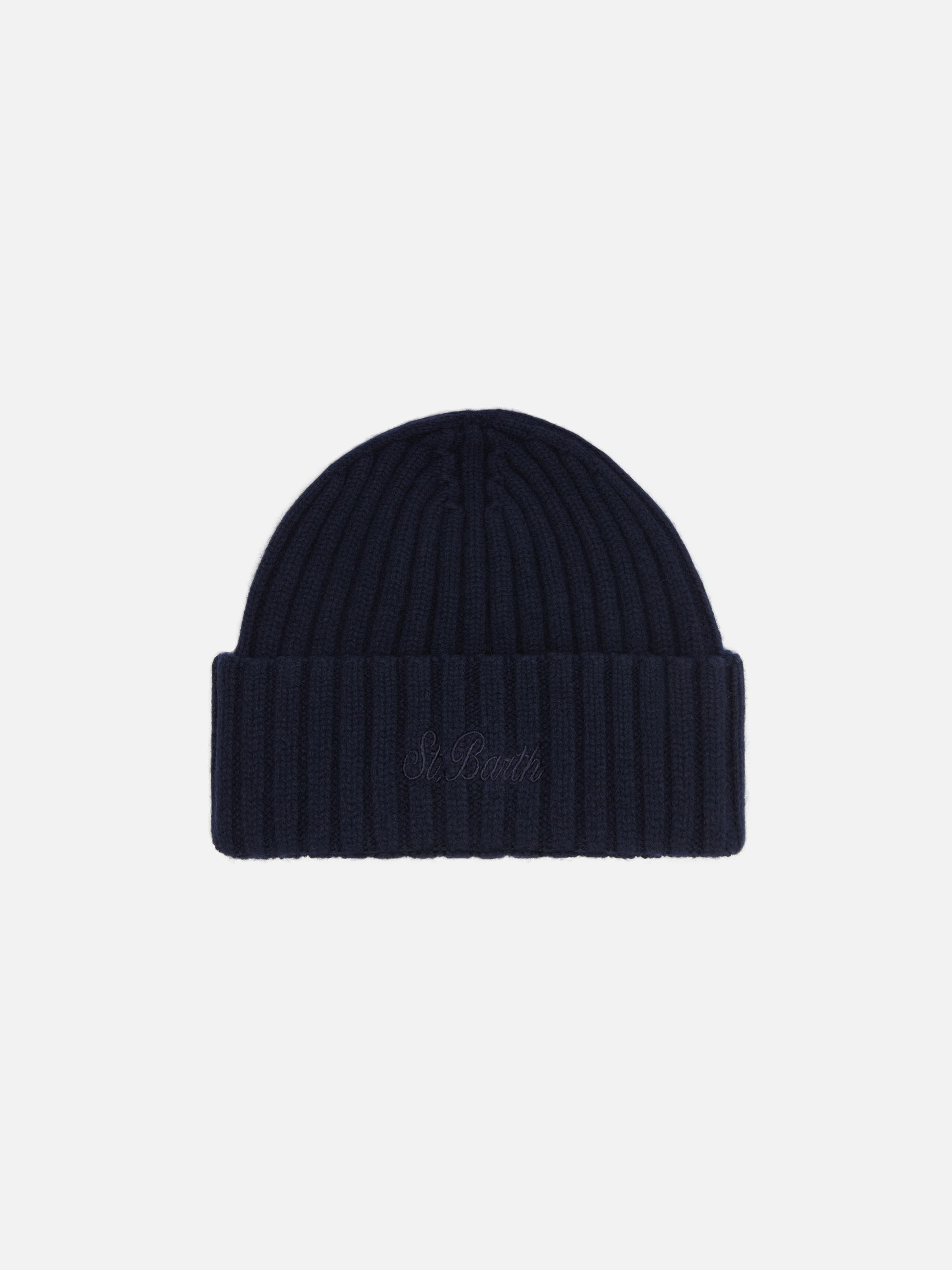 Berretto Wengen in blu notte con ricamo St. Barth sul risvolto
