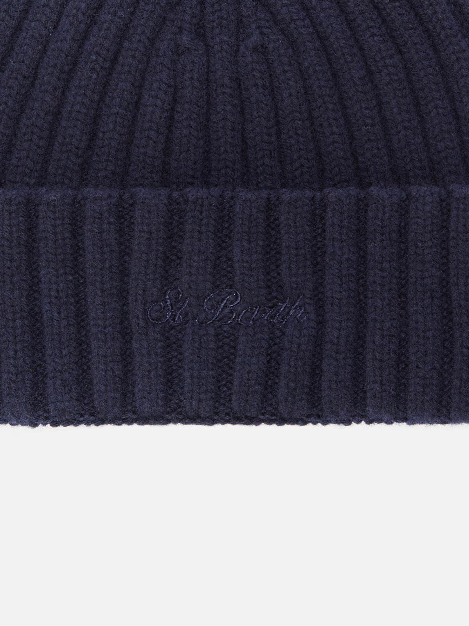 Berretto Wengen in lana blu notte con ricamo St. Barth sul risvolto