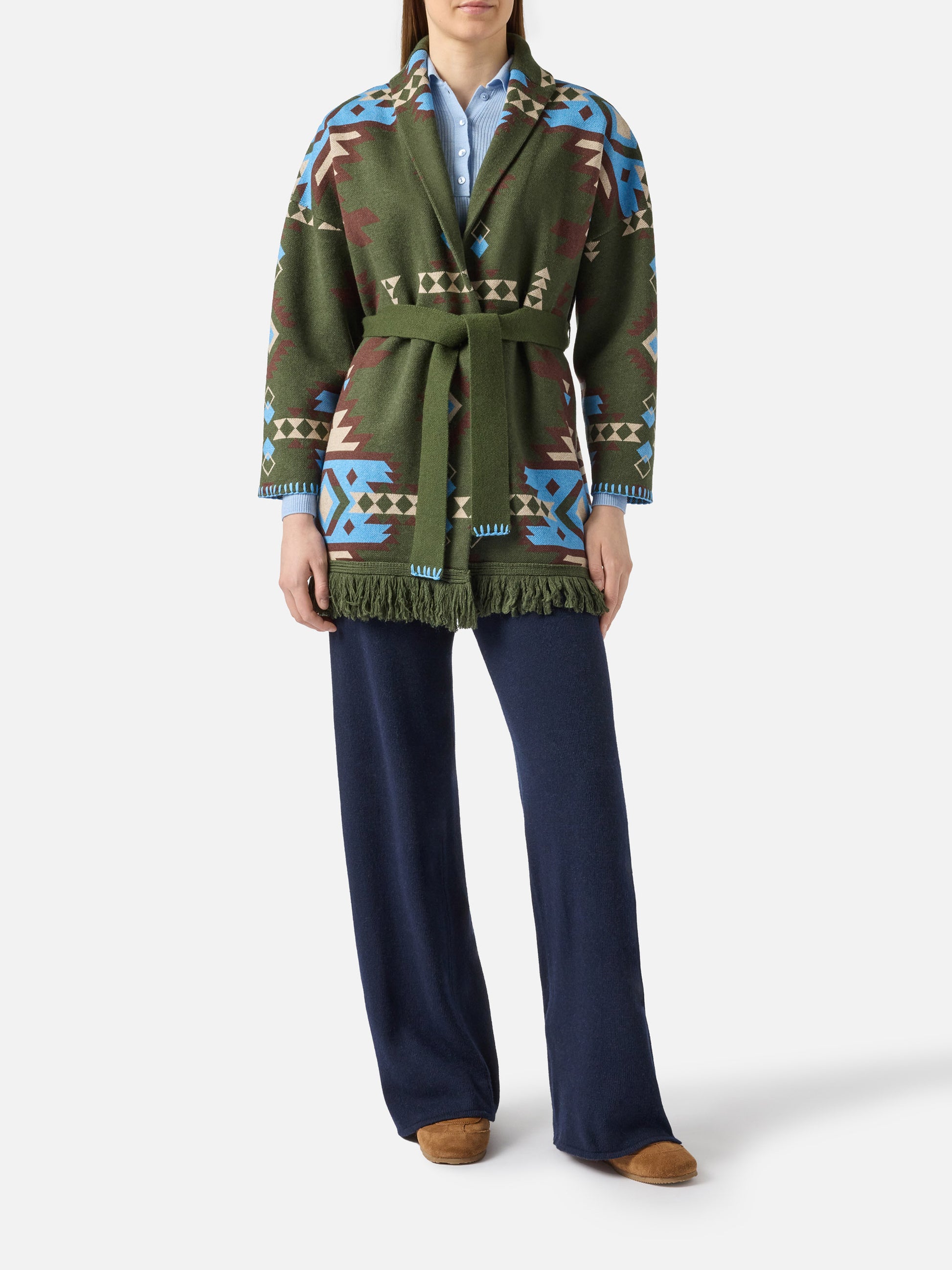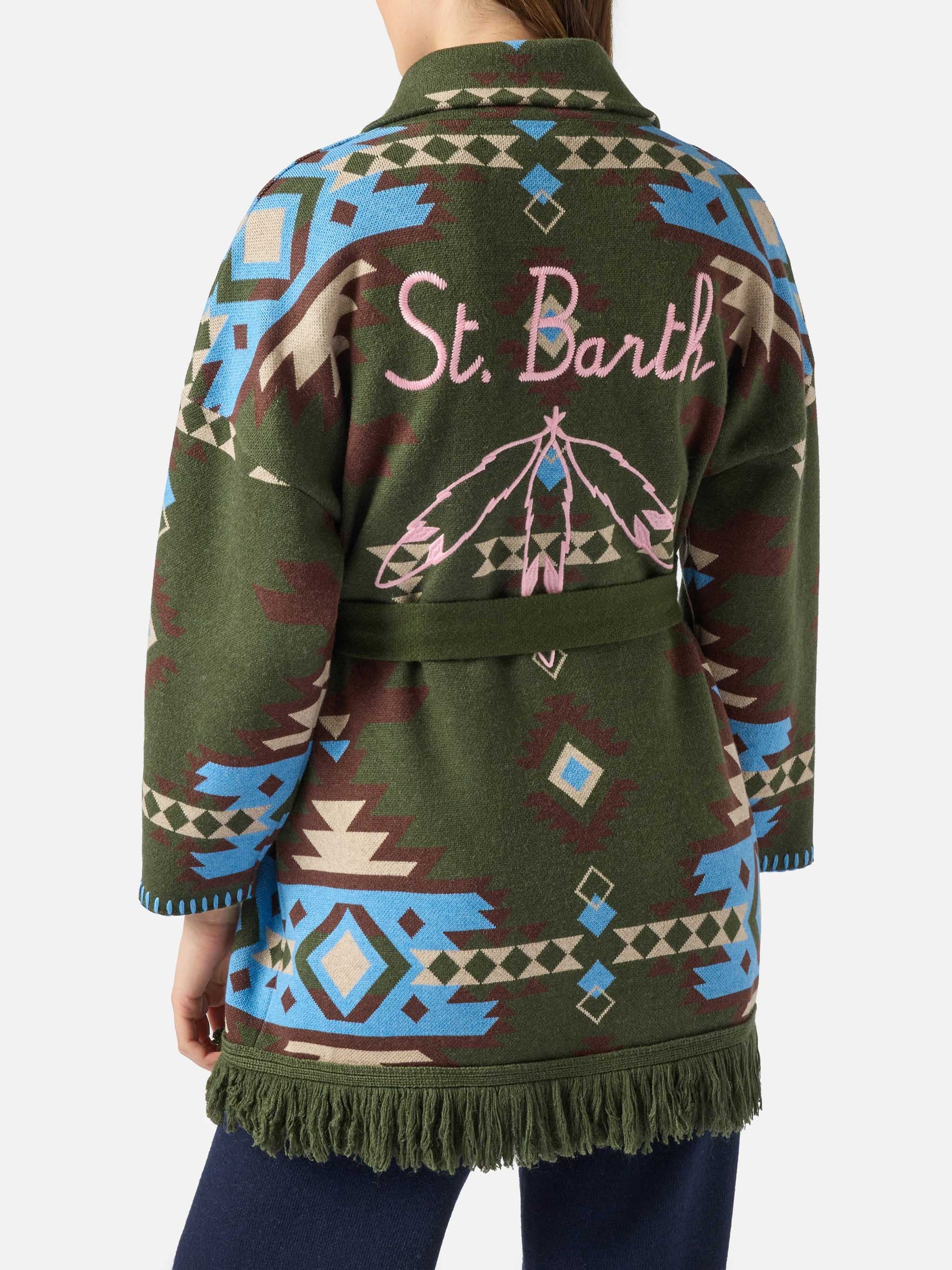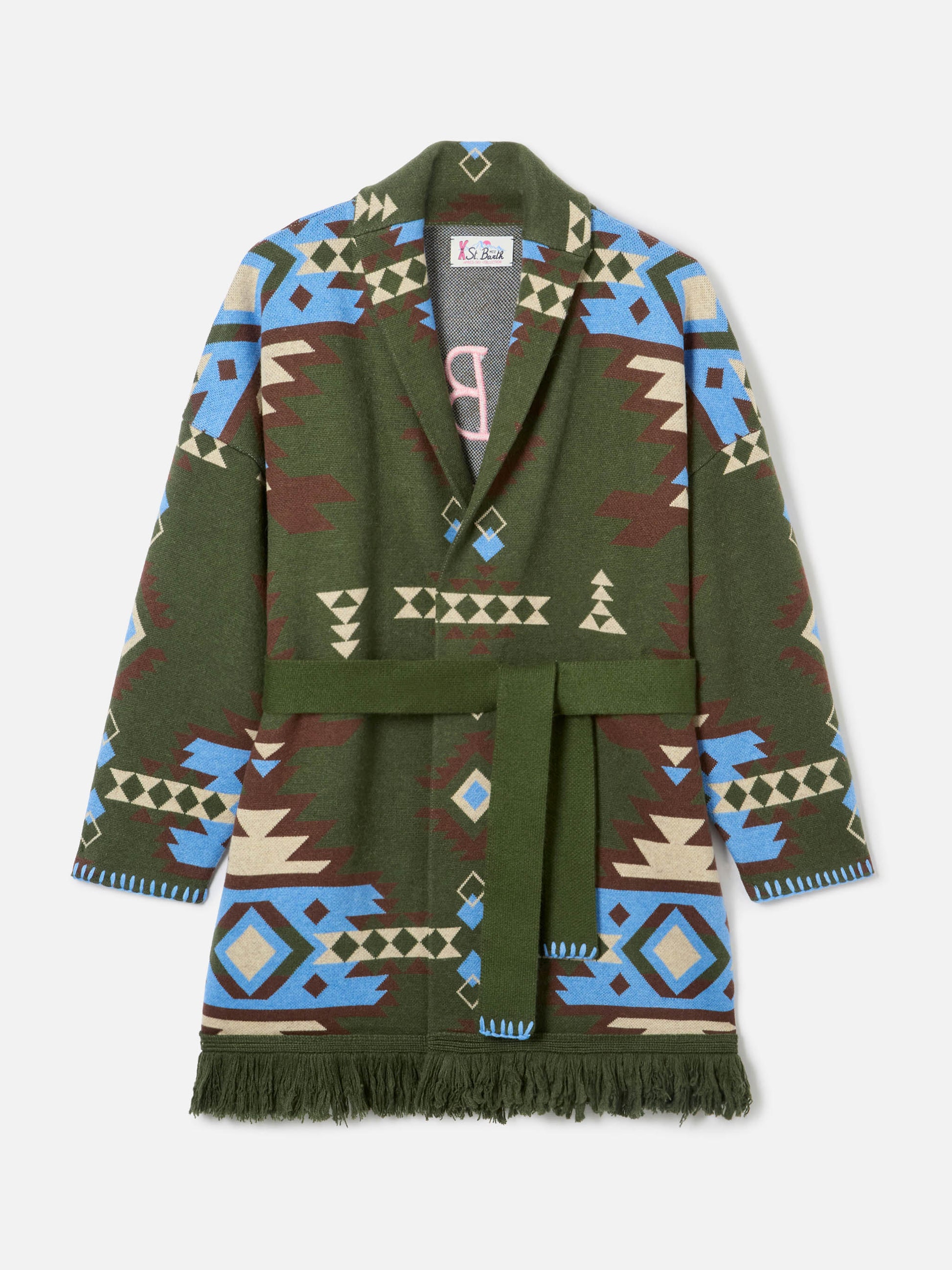 Cardigan Cristabel con cintura e stampa etnica