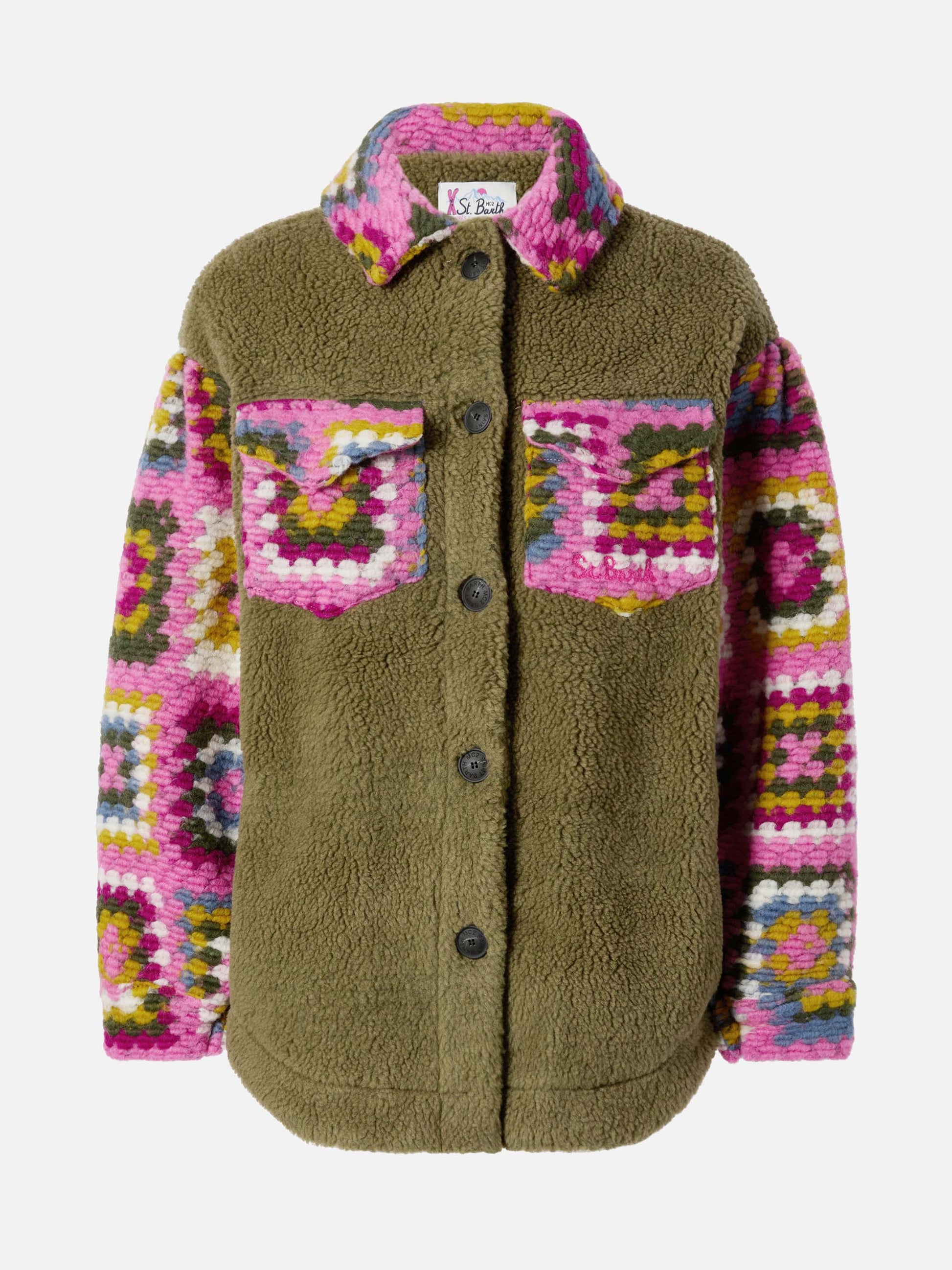 Borsa a mano Colette Shearling faux suede ghiaccio con dettagli in shearling