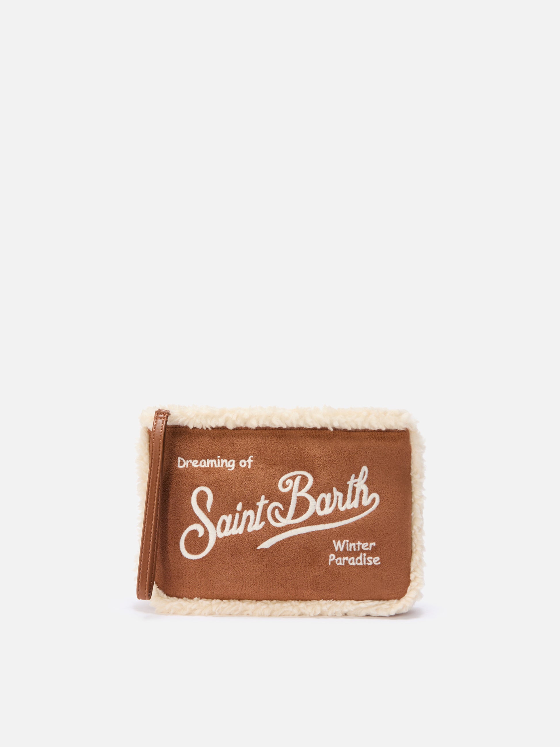 Aline Shearling Pouch in sherpa and camel faux suede