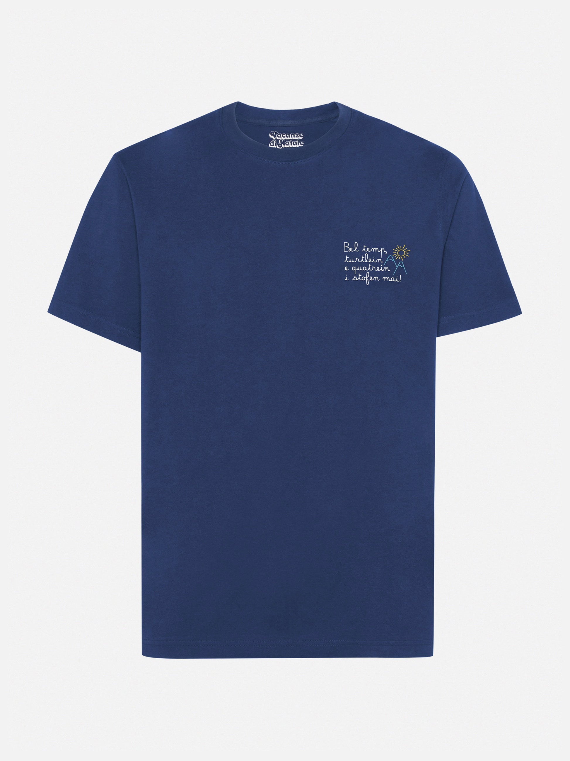 Arnott Warm winter cotton T-shirt in blue with Bel temp… embroidery | VACANZE DI NATALE SPECIAL EDITION
