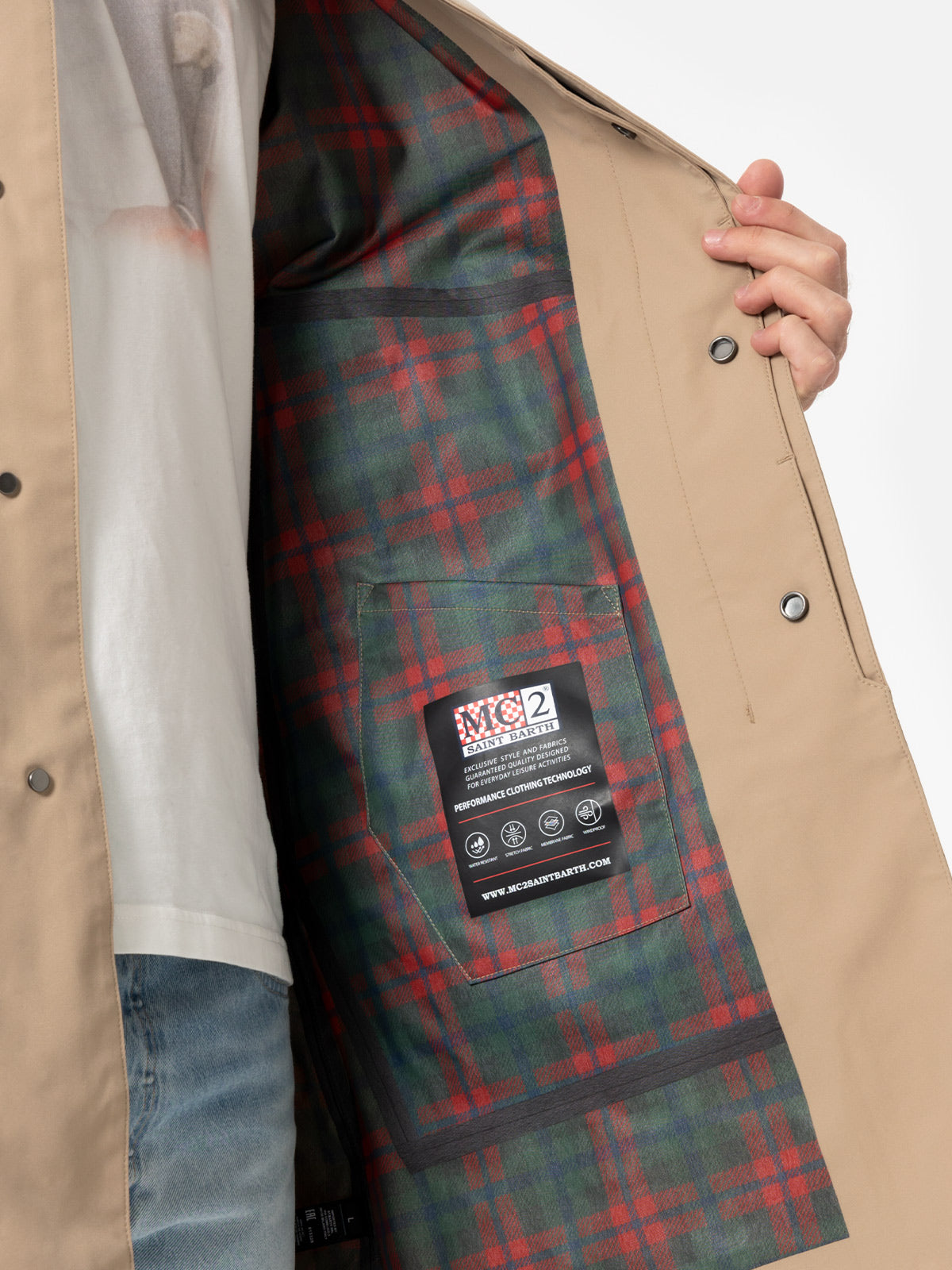 Beige stretch fabric trench Elbert with welt