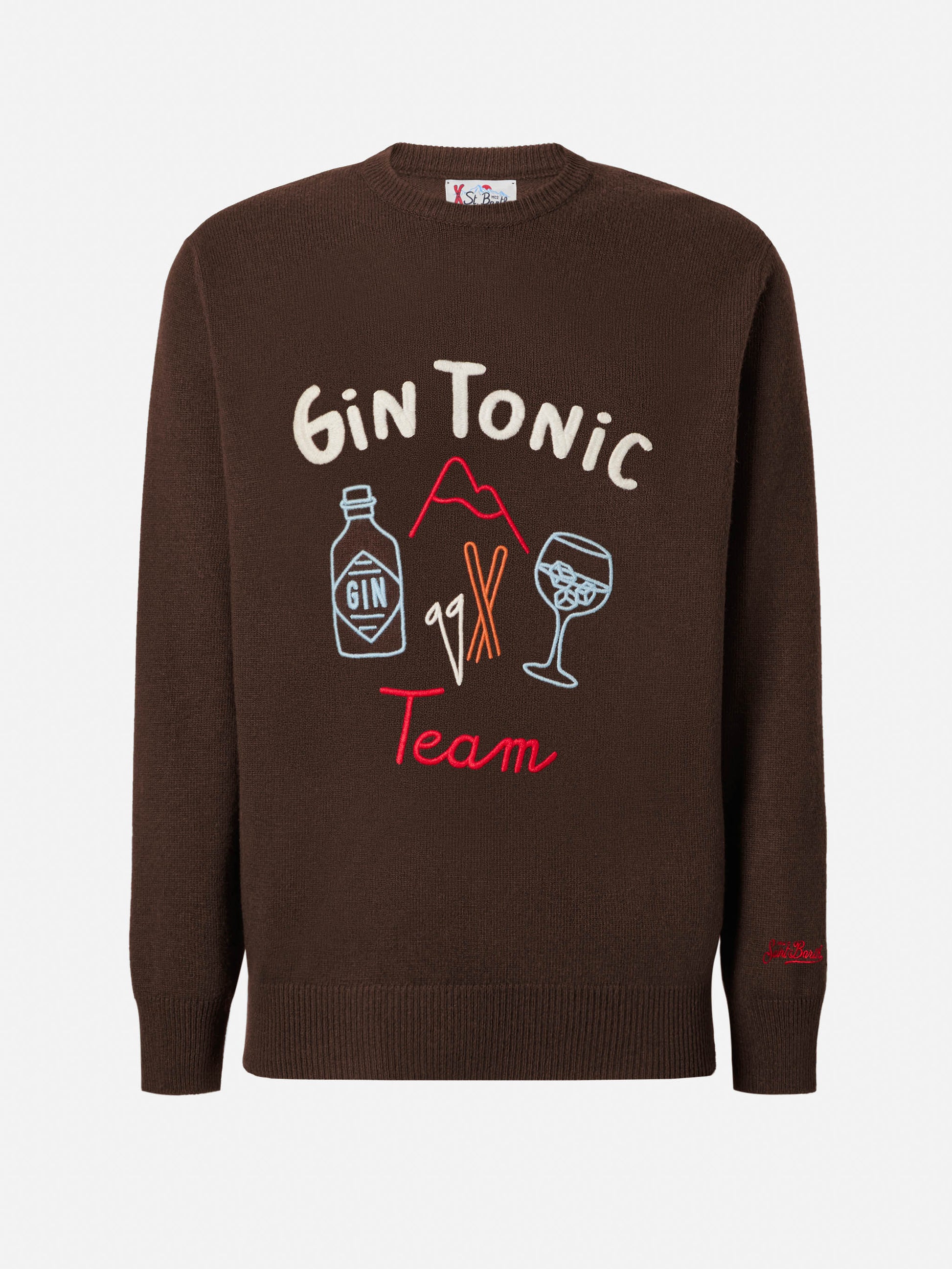 Brown crewneck Heron with Gin Tonic Team embroidery