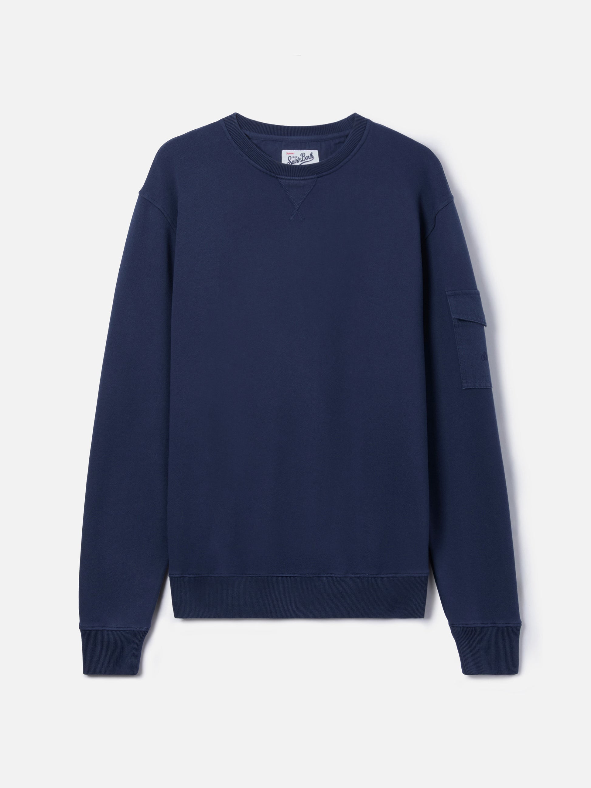 Chester navy blue fleece sweatshirt with sleeve pocket