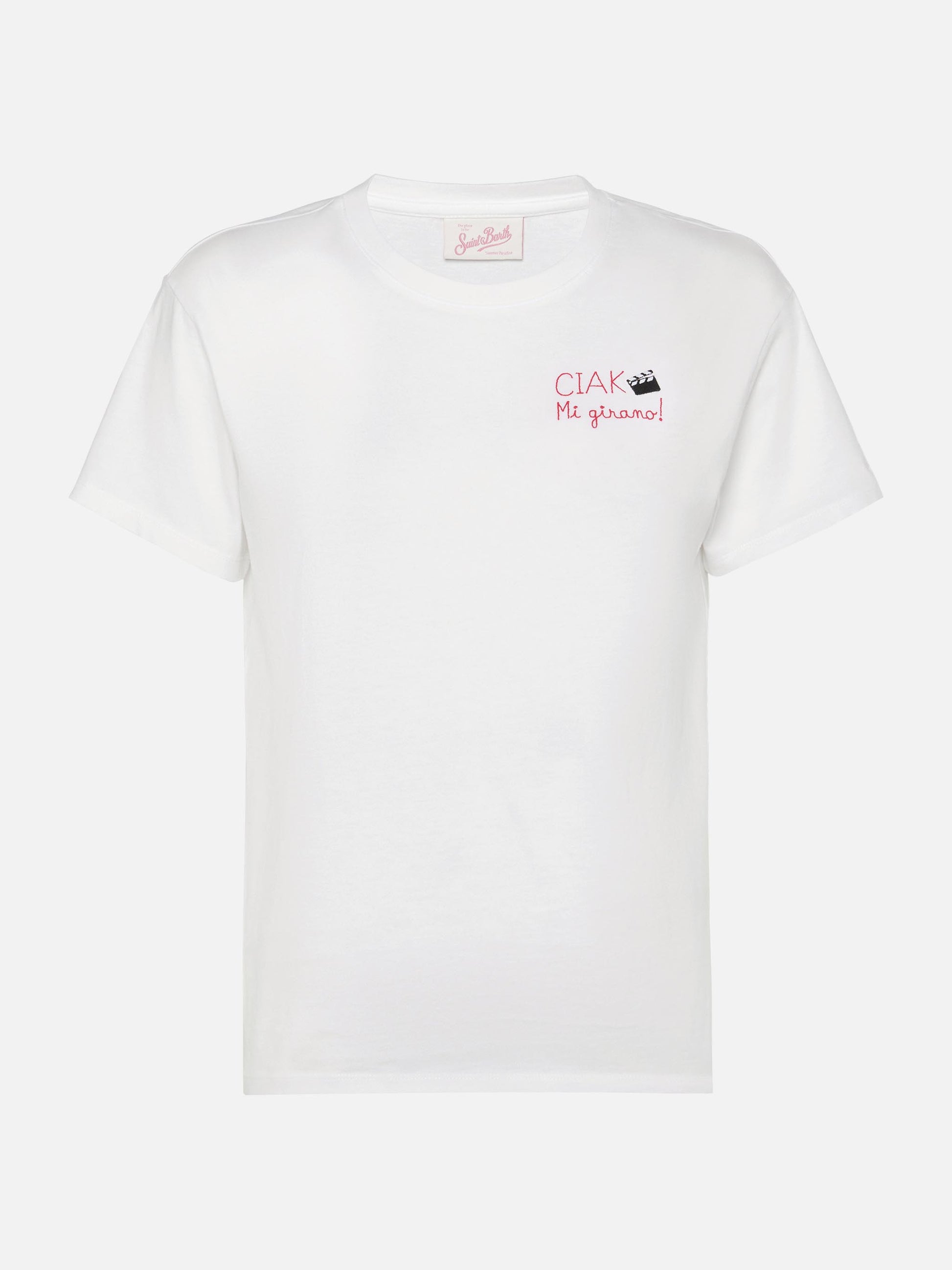 Emilie cotton t-shirt with Ciak mi girano embroidery