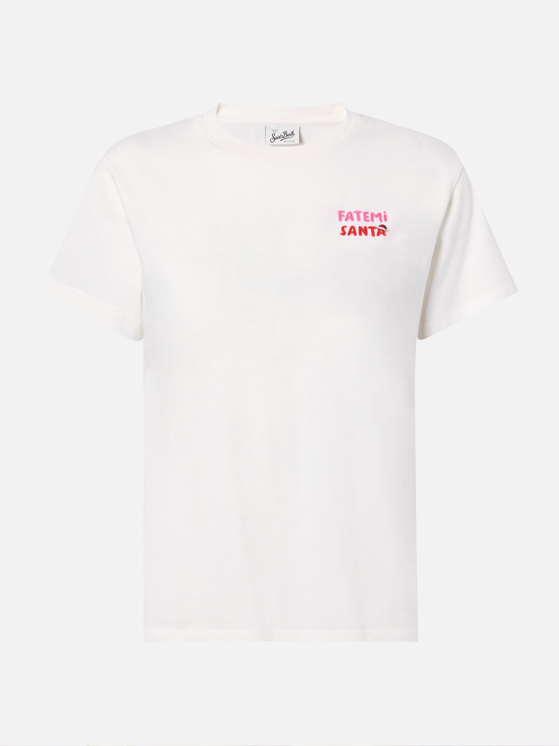 Emilie organic cotton T-shirt in white with Fatemi Santa embroidery