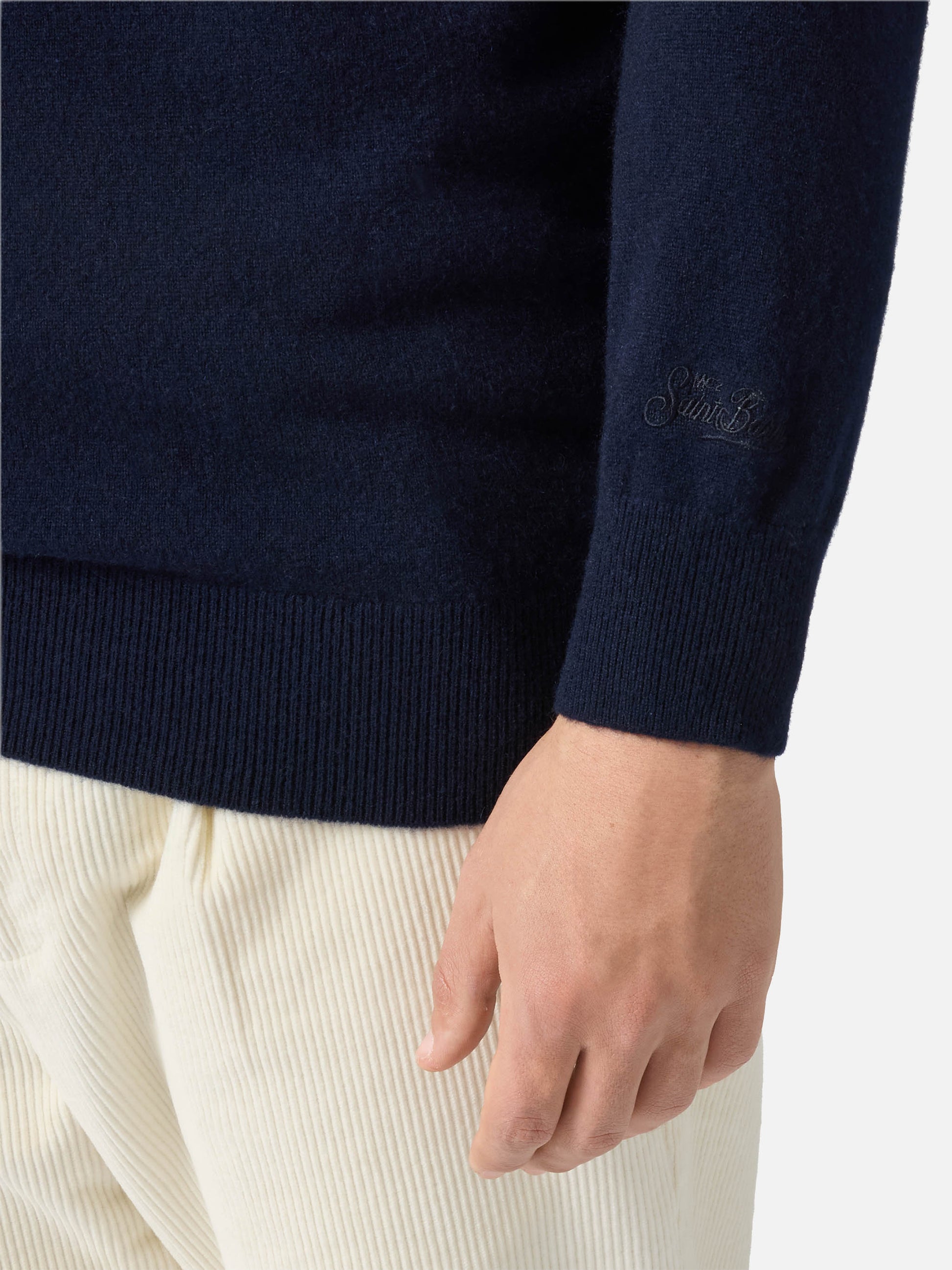 Heron Light sweater in 100% blue CASHMERE with St. Moritz intarsia | ST. MORITZ TOP OF THE WORLD