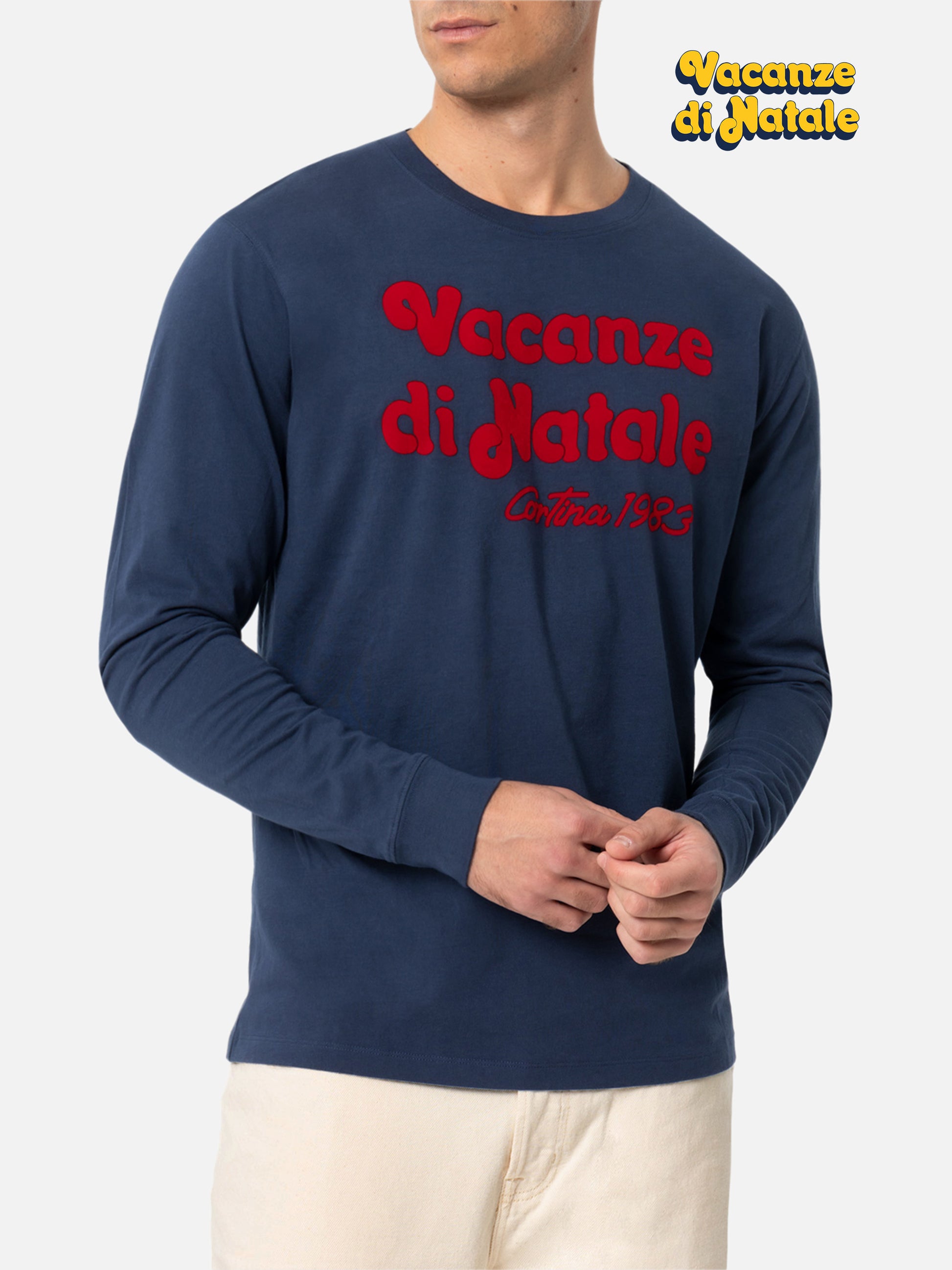 Man blue t-shirt Luton with Vacanze di Natale film logo print | VACANZE DI NATALE SPECIAL EDITION