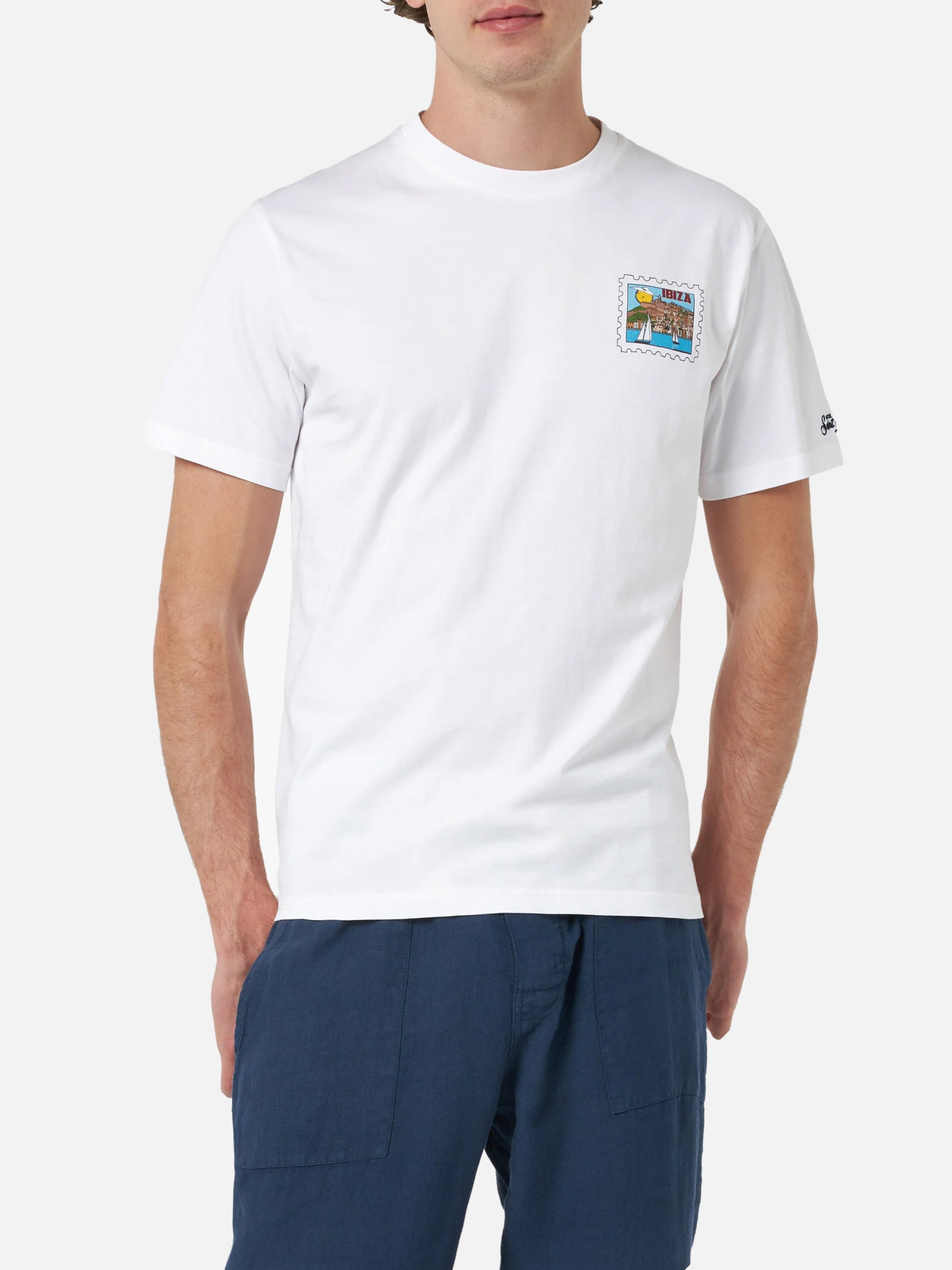 Man cotton t-shirt with Ibiza postcard front and back print | ALESSANDRO ENRIQUEZ SPECIAL EDITION