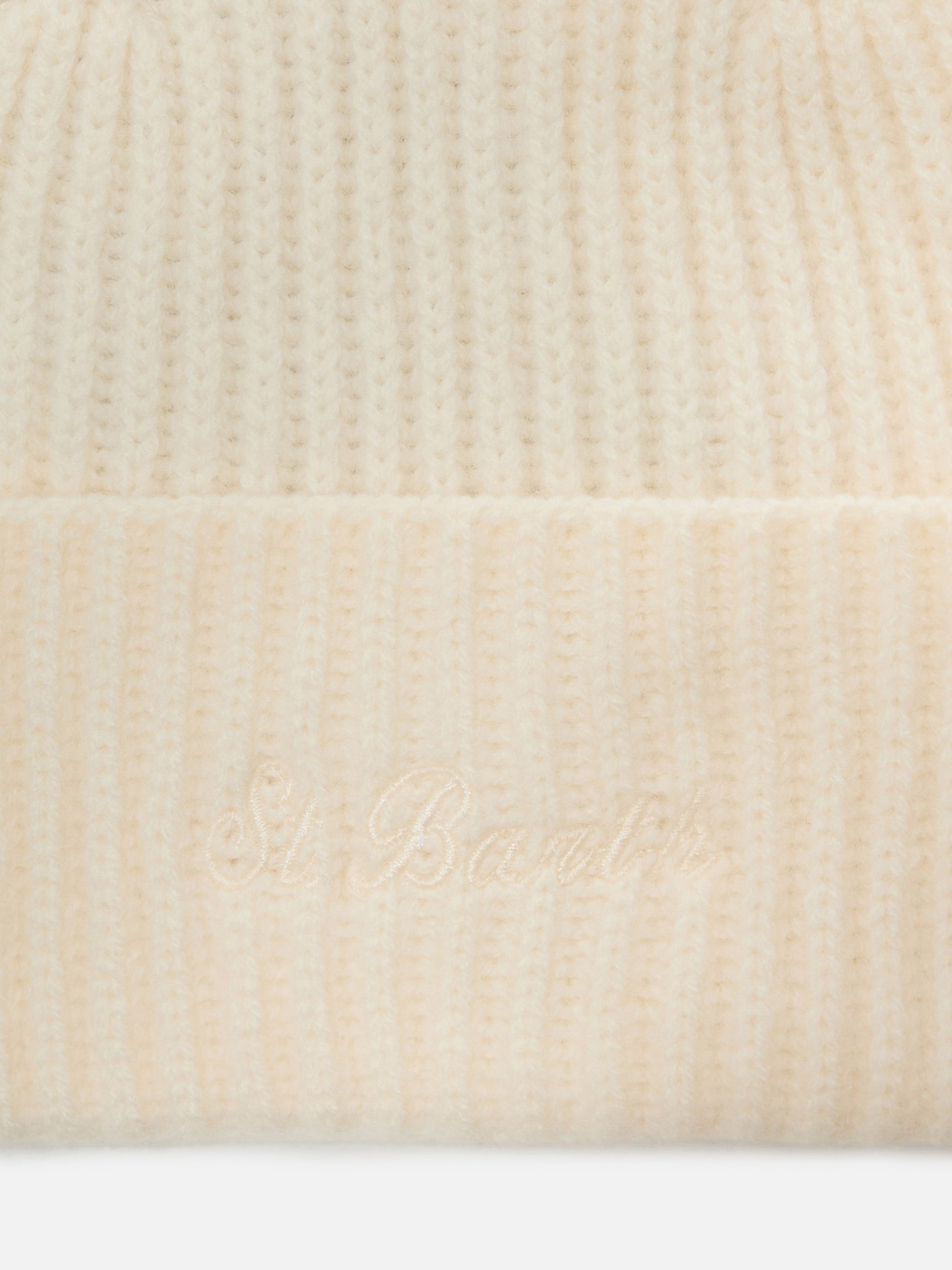 Moss Beanie in white 100% WOOL with St. Barth embroidery