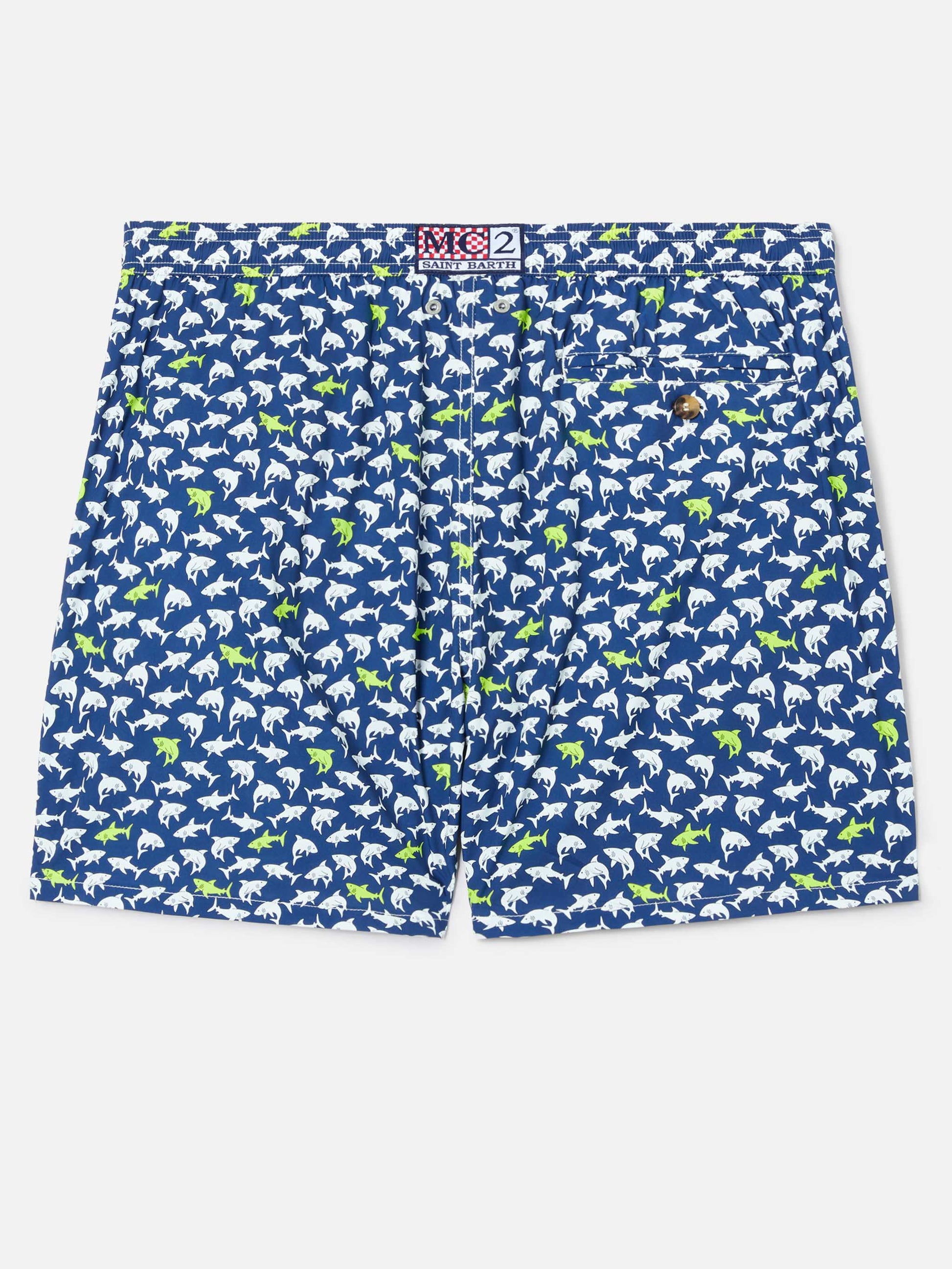 https://it.mc2saintbarth.com/products/navy-blue-lighting-micro-swim-shorts-with-all-over-shark-print10775379476826Navy blue Lighting Micro swim shorts with all-over shark print119,00https:files/UID_LIG001607507L-MAN-SWIMSHORT-BLUE-MC2-MC2-20260331134534_1.jpghttps:files/UID_LIG001607507L-MAN-SWIMSHORT-BLUE-MC2-MC2-20260331134534_1.jpgEURInStockSWIMSHORT650948215130All Products - Only Man649134276954AVADA - Best Sellers280043487416Father & Son Swimwear628483883354Lighting man swim shorts288251543736Man - View All Swimwear674079899994Men Mini Print Swim Shorts673877852506Men Print & Graphic Swim Shorts673877819738Men Quick Dry Swim Shorts673877360986Men Swim Shorts603371077978Swimshorts All626723225946The Quick Dry Fabric - Man654689960282UpSelling_Man_Swimshorts278956736696View All Micro Printed Swim ShortsThe Lighting Micro swim shorts are crafted from breathable quick-dry fabric designed to provide comfort and freedom of movement. The navy blue design features an all-over shark print that gives the style a dynamic and playful character. The elasticated waistband with drawstring allows for an adjustable fit, while functional pockets and refined details complete the construction. The elasticated antibacterial inner mesh ensures comfort during wear. The style features a mid-length cut, a comfort fit and is part of the father & son capsule.