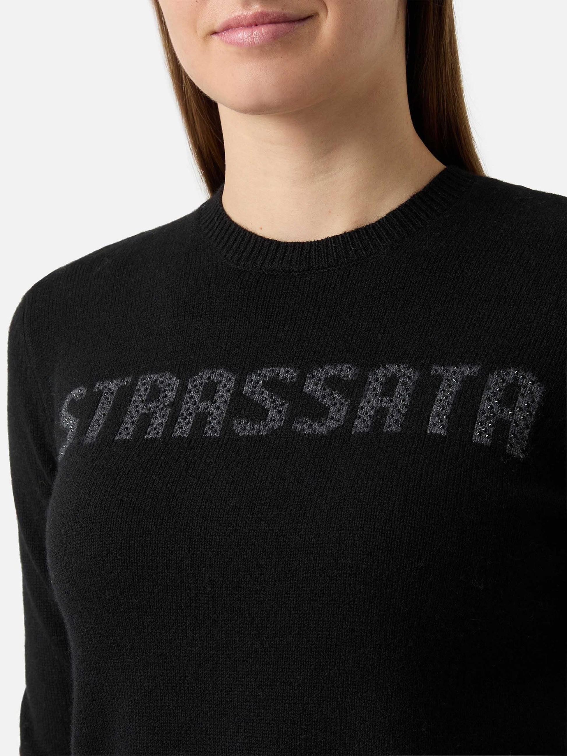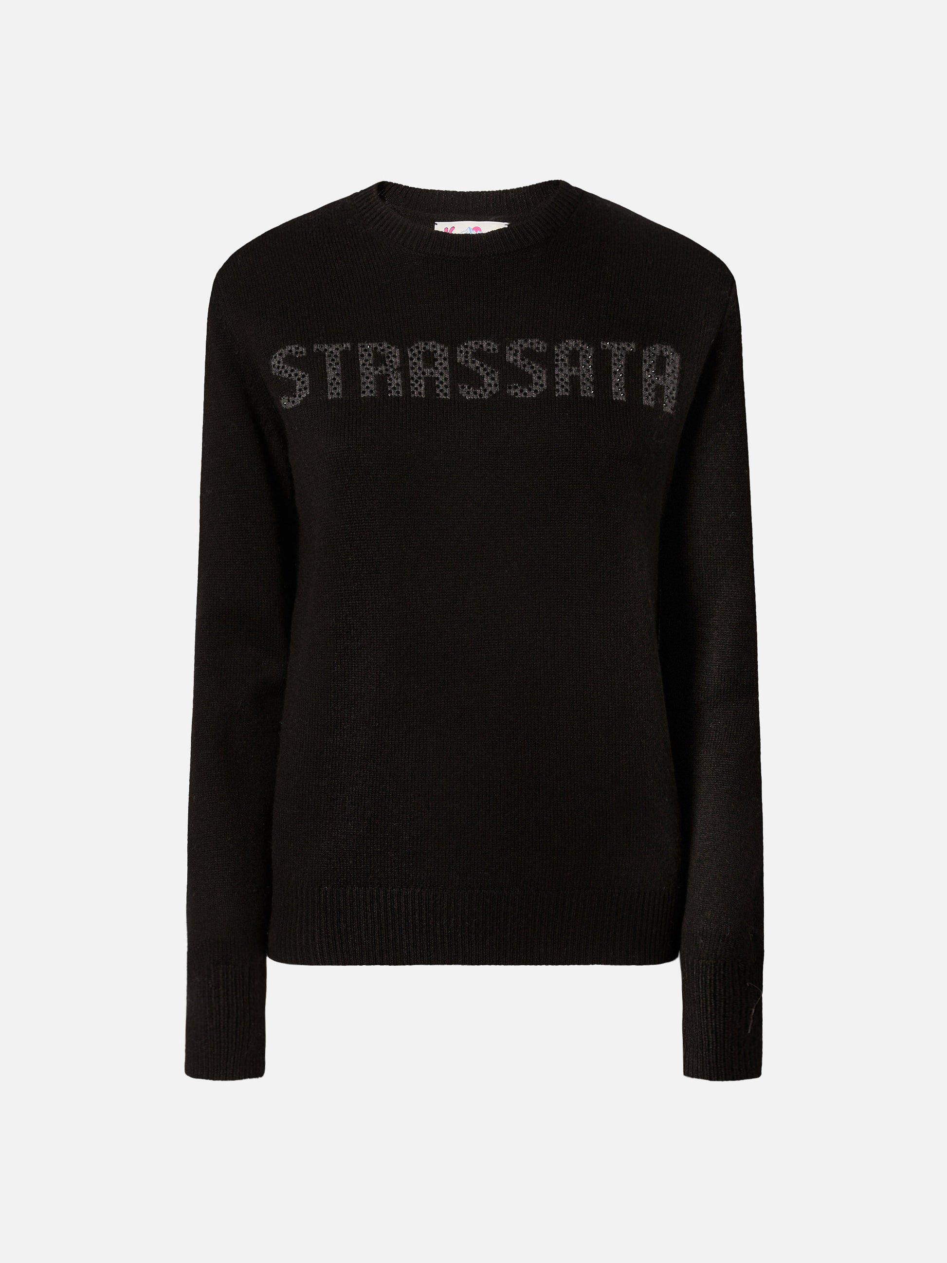 New Queen crewneck in white with Strassata rhinestone embellishment