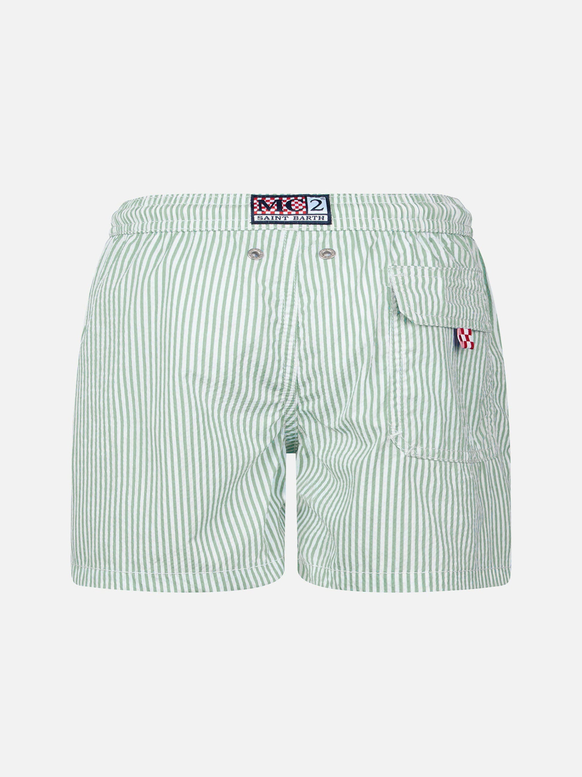 Patmos Jr sage green seersucker striped mid-length swim shorts