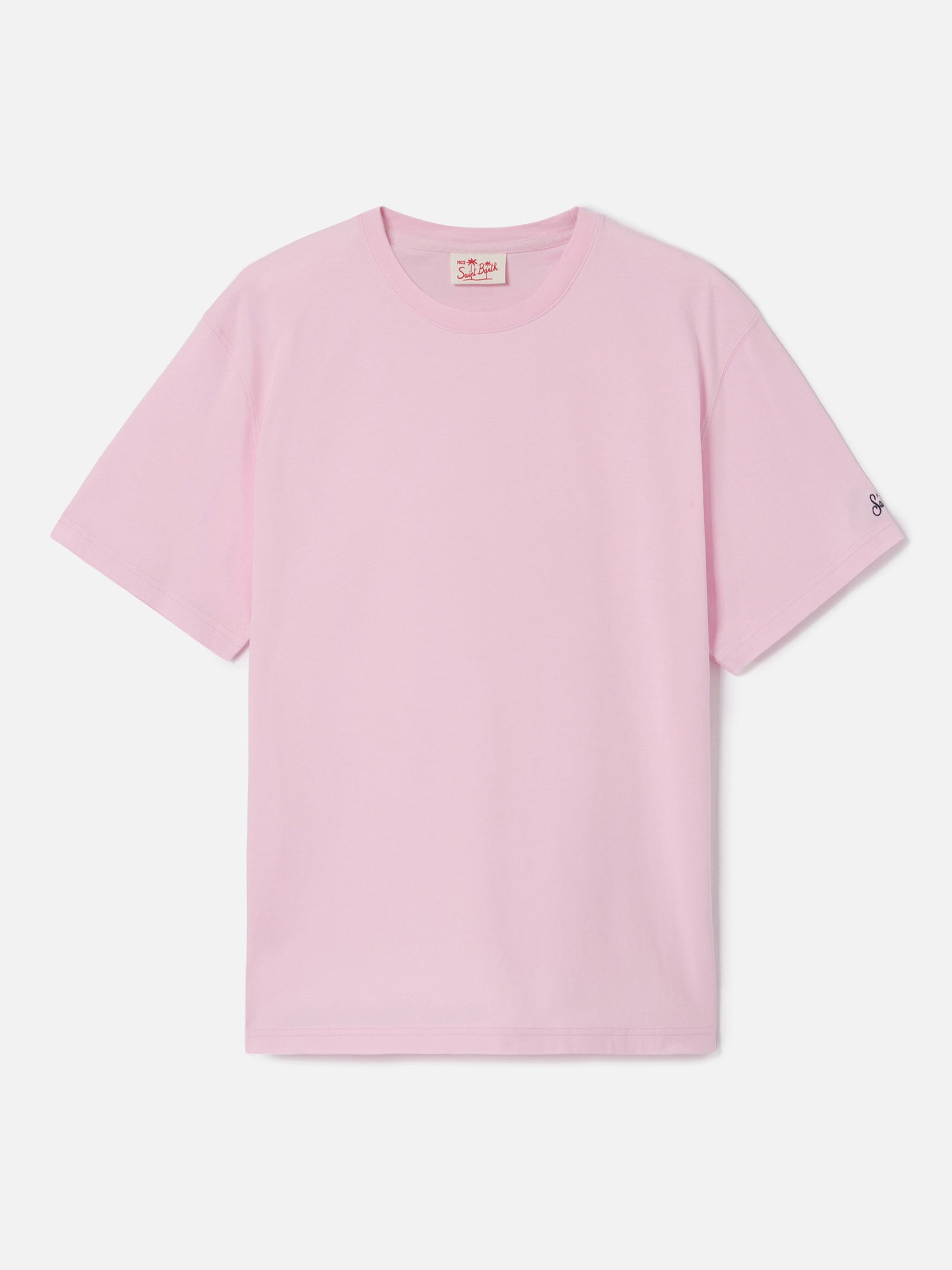 The Dover t-shirt is crafted from pure cotton fabric, designed to offer comfort and a natural feel on the skin. The pink solid color design highlights the essential construction of the garment and defines a clean and contemporary aesthetic. The model is completed with tone-on-tone St. Barth embroidery that adds a distinctive detail. The garment features a crew neckline, short sleeves and a straight line with a regular fit.