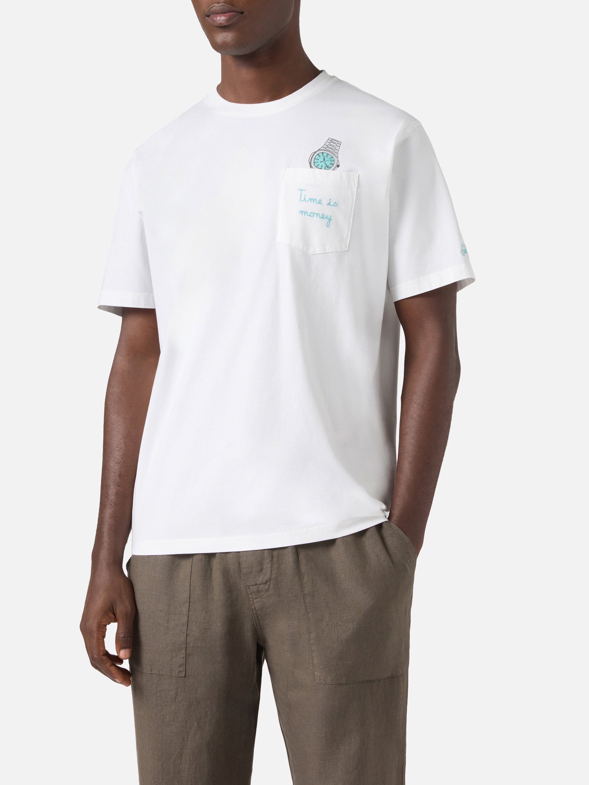 https://it.mc2saintbarth.com/products/white-austin-t-shirt-with-watch-and-time-is-money-embroidery10775856283994White Austin t-shirt with watch and Time Is Money embroidery79,00https:files/UID_AUS000104354L-MAN-T-SHIRT-WHITE-MC2-MC2_4.jpghttps:files/UID_AUS000104354L-MAN-T-SHIRT-WHITE-MC2-MC2_4.jpgEURInStockT-SHIRT650948215130All Products - Only Man649134276954AVADA - Best Sellers288164774072Man T-shirts628412809562Small Embroidery T-shirts654690484570UpSelling_Man_T-shirts654690746714UpSelling_Man_T-shirts-Watches659687637338View All Small embroidery647428079962Watch Collection Small Embroideries621710016858Watches passionatesThe Austin t-shirt is crafted from pure cotton, designed to provide comfort and a natural feel against the skin. The white solid-color design highlights the essential construction of the garment. The style features a chest pocket with contrasting Time Is Money embroidery and is completed by a watch illustration. The garment is finished with St. Barth embroidery. The model features a crew neck, short sleeves and a straight silhouette with regular fit.