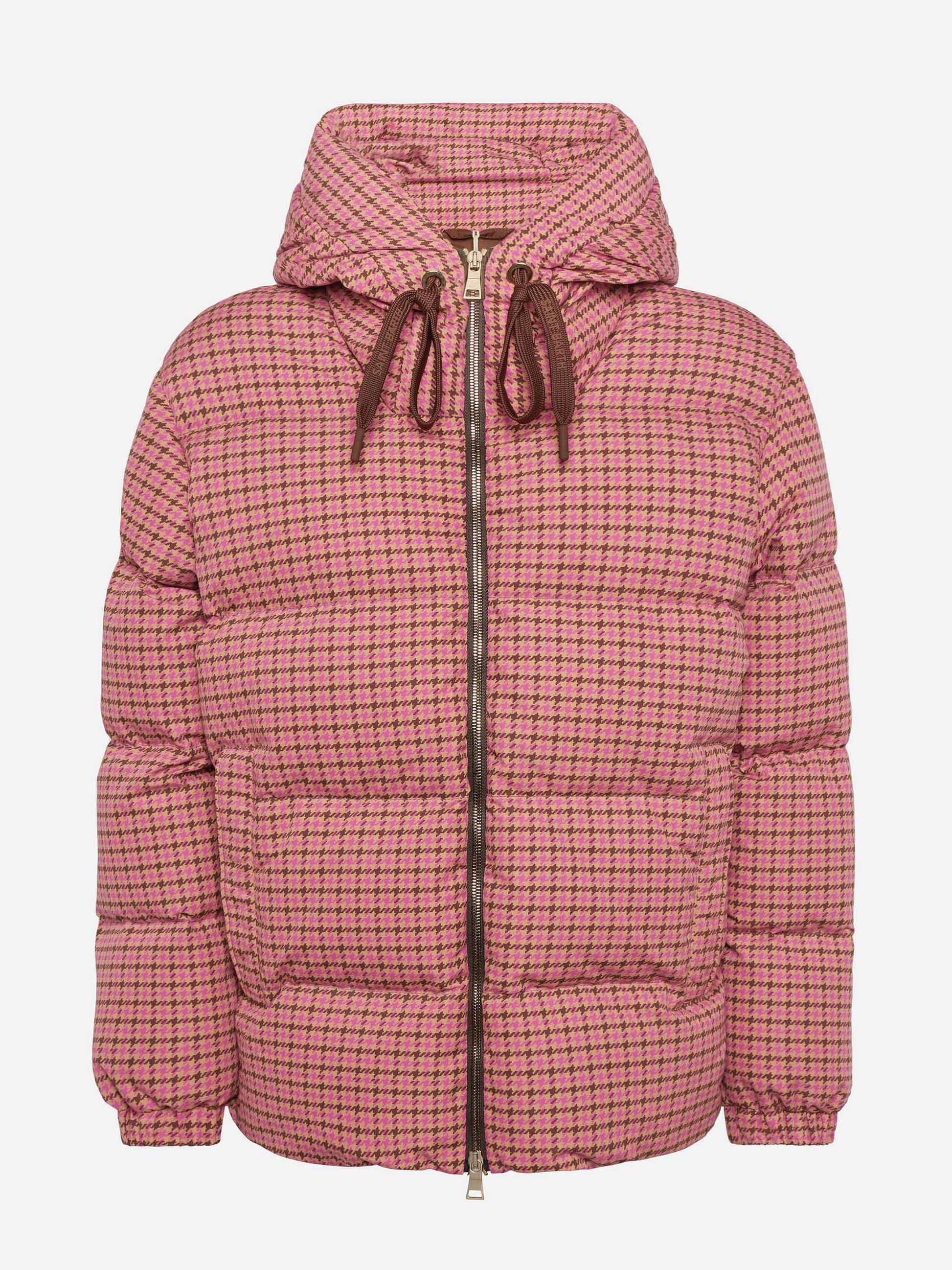 Hooded down padded jacket Geneve with pied de poul print