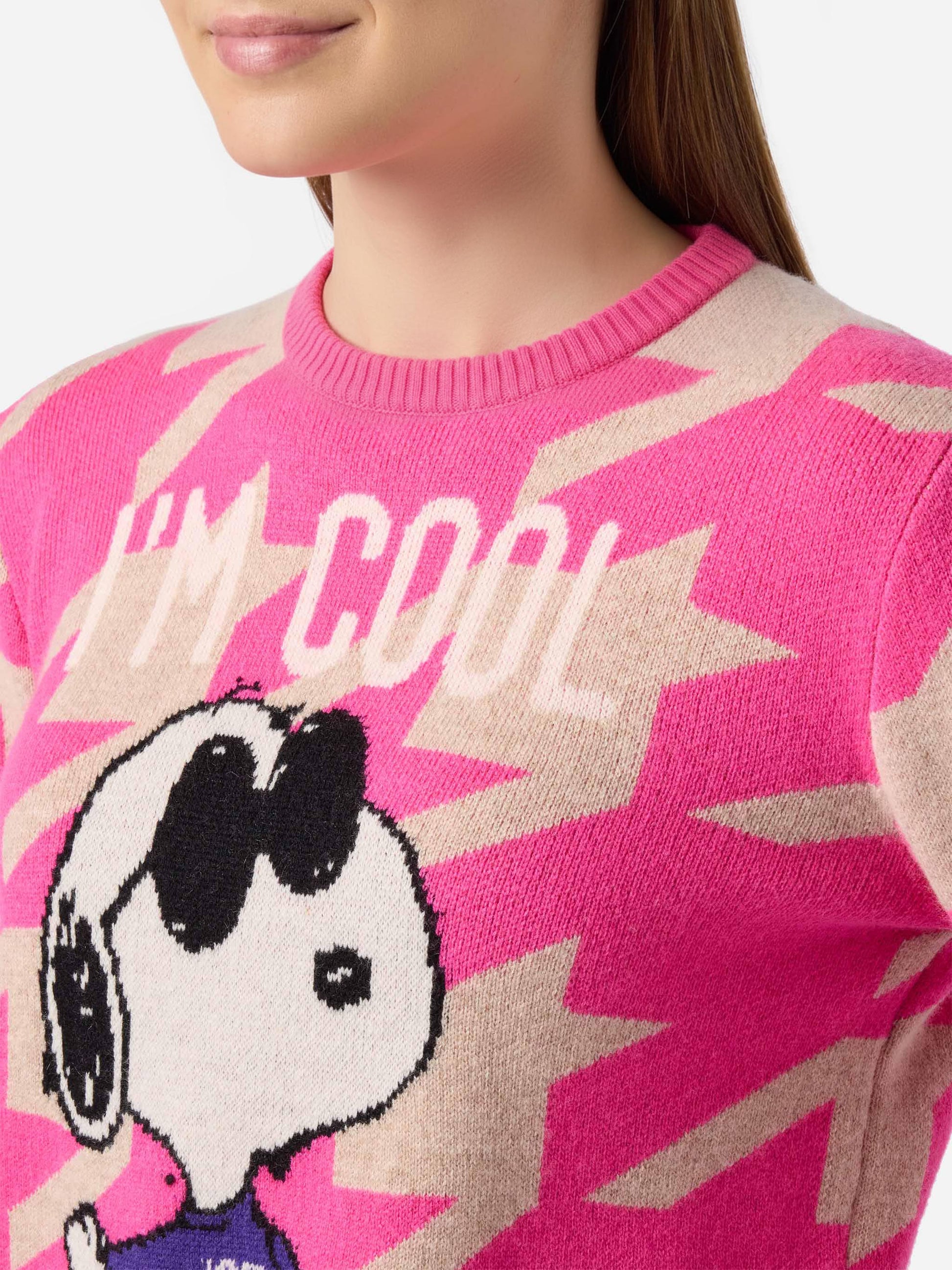 Woman pied de poule sweater New Queen with Snoopy jacquard