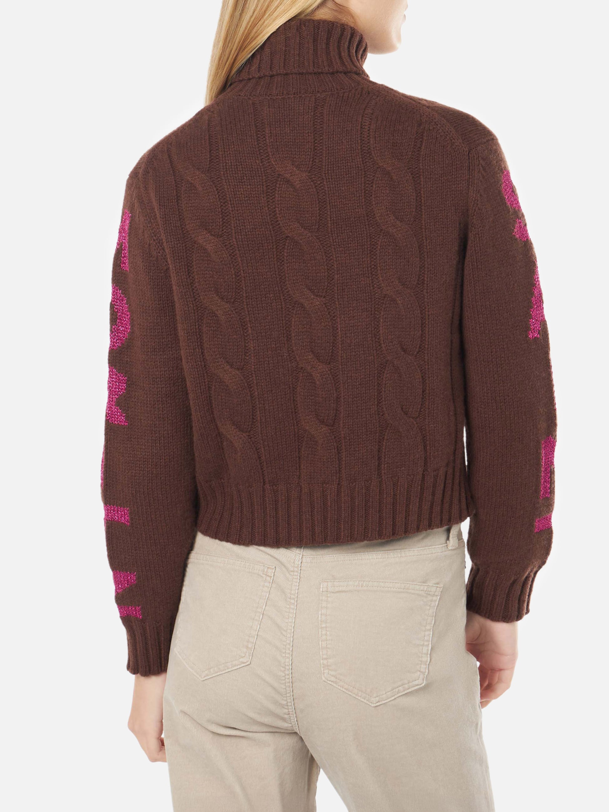 Woman turtleneck braided sweater with Saint Moritz jacquard